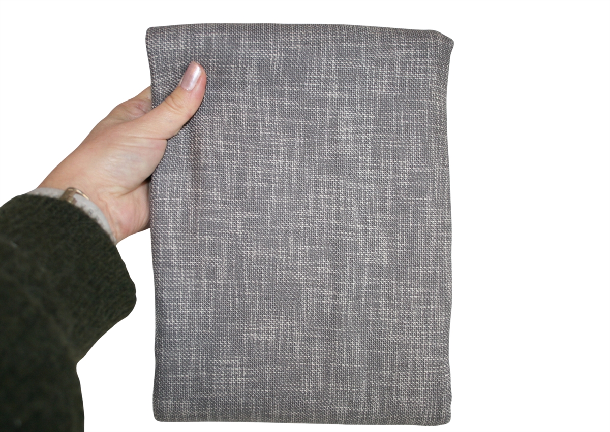 Grå/naturhvid uld i en let-medium kraftig vævning. Stoffet har en mørkere og en lysere grå side. Brug fx stoffet til en nederdel.