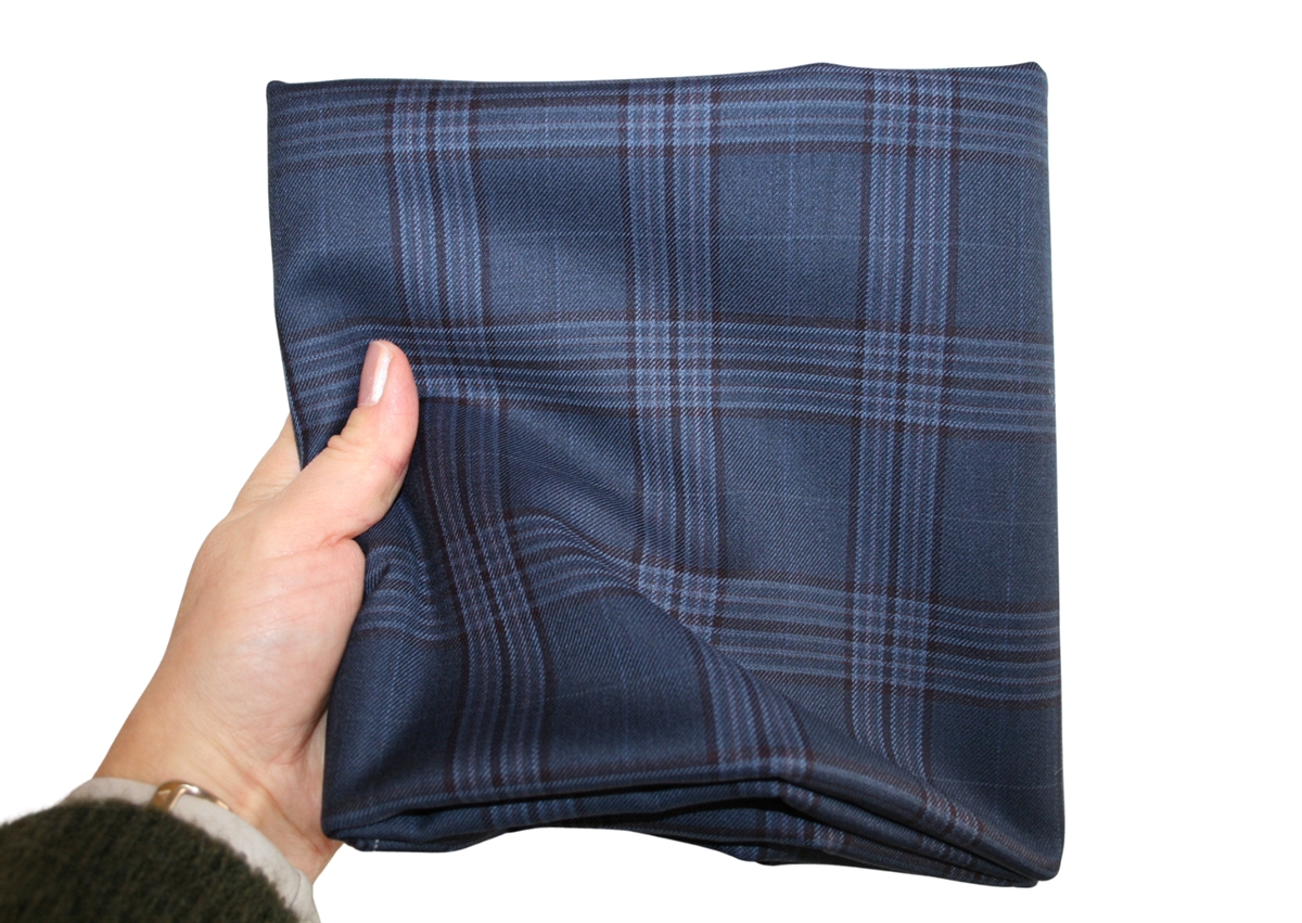 Blå/aubergine ternet uld i en lettere kvalitet.