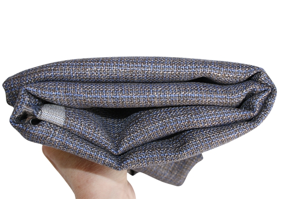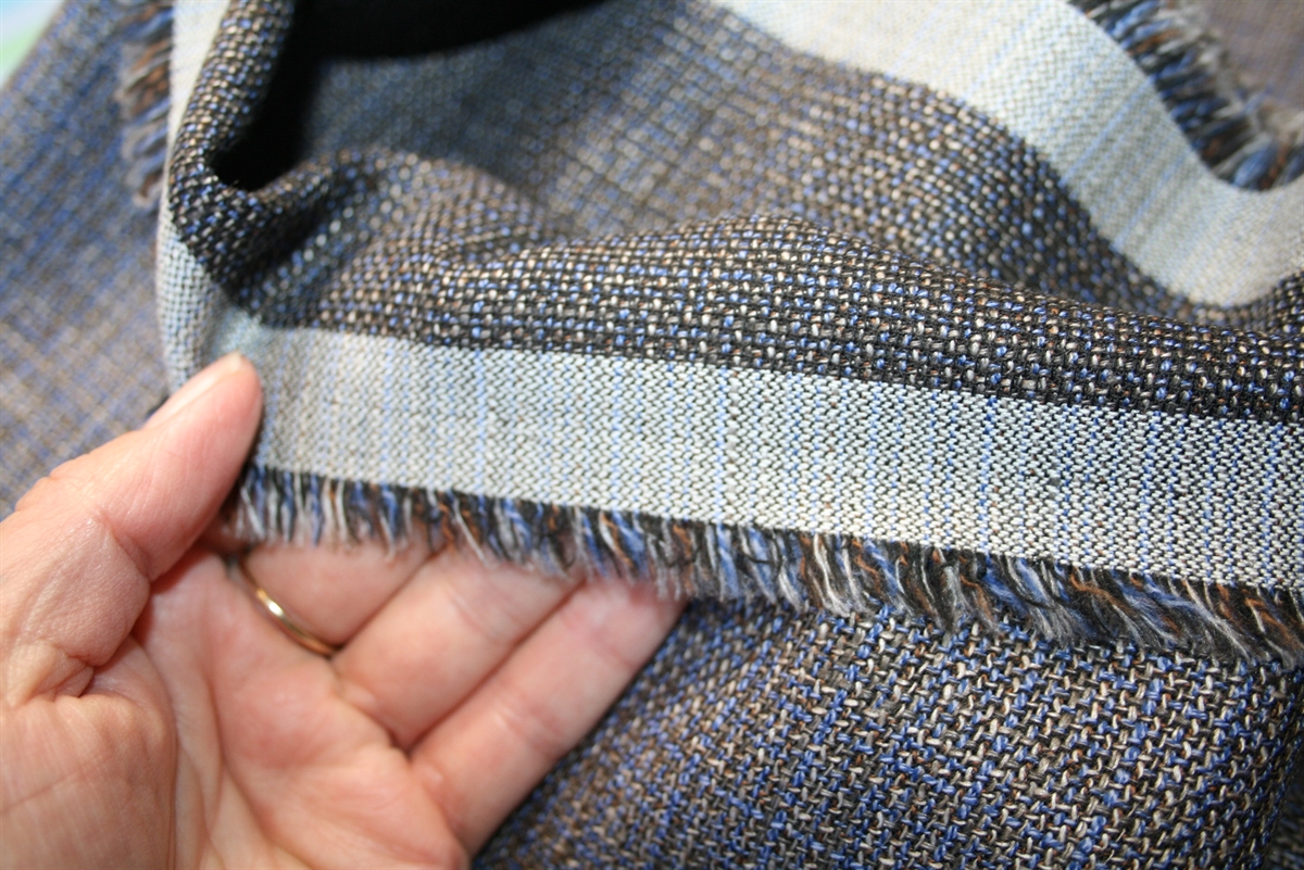 Medium kraftig uld i en flot kobolt/brun/sort vævning. Ulden har en lysere og en mørkere side. Brug fx stoffet til en nederdel.