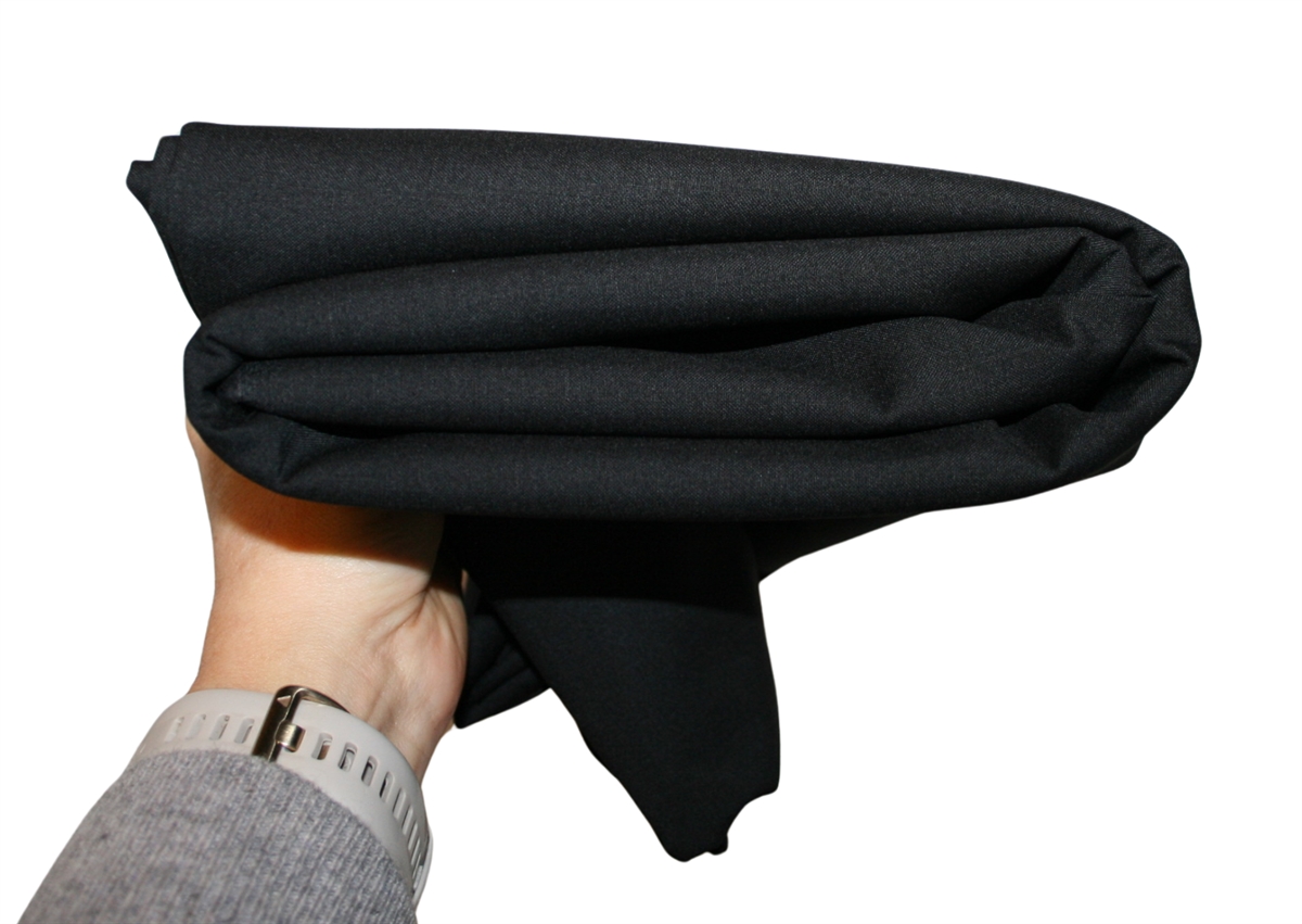 Lettere fastvævet sort uld i en let sprød kvalitet til fx nederdel eller kjole.