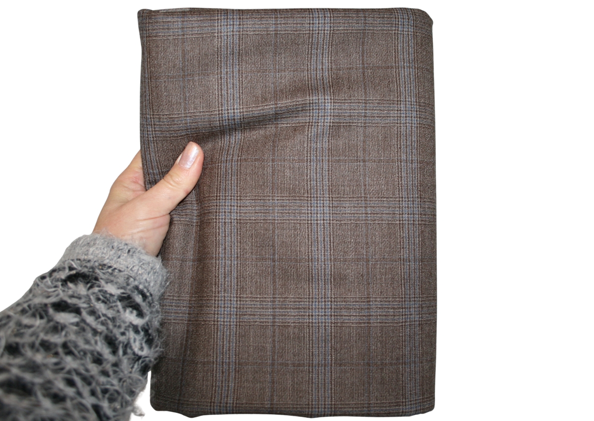 Brun/blå ternet uld i en lettere og lækker italiensk kvalitet. Brug fx stoffet til kjole eller bukser.