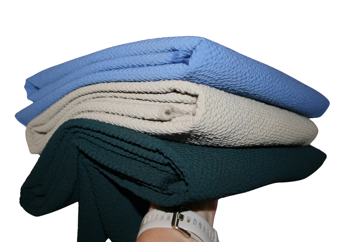 Stofpakke med i alt 2,45 m. seersucker uld fordelt på farverne flaskegrøn, beige og lyseblå. Kvaliteten er let og luftig.