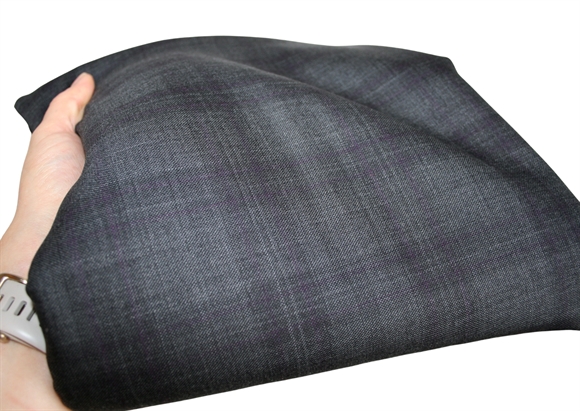 Grå melange og lilla ternet uld i en let og lækker vævning. Brug fx stoffet til bukser.