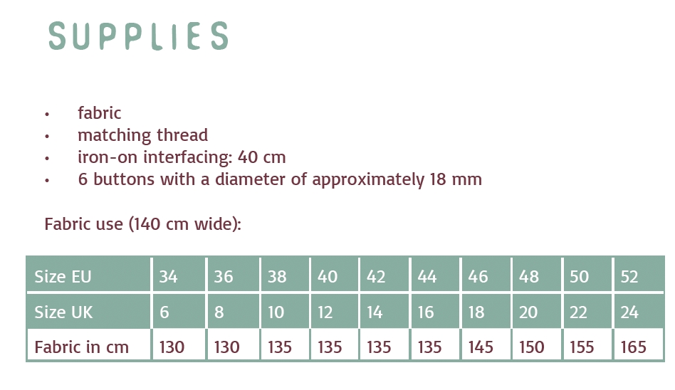 Materialevalg: Modellen er velegnet til lette til mellemtykke kvaliteter i fx bomuld, hør og viskose.