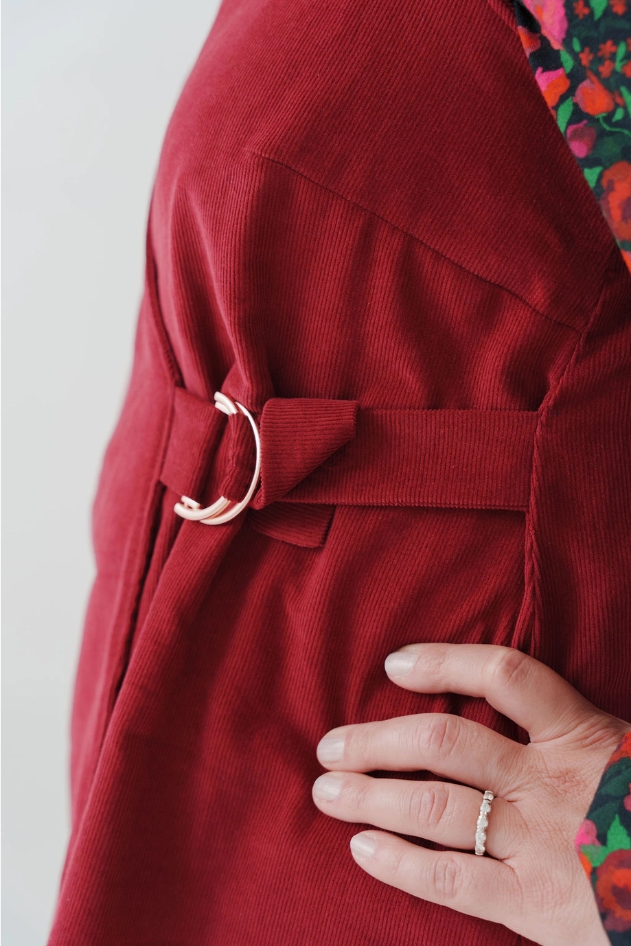 Dorothea spencer kjole er en let og stilfuld beklædningsgenstand. Med sit A-formede snit og krydsede V-udskæring kan den bæres lag-på-lag for at variere udseendet gennem sæsonerne. Du har to lukningsmuligheder: en knapstolpe eller en rem med d-ringe.