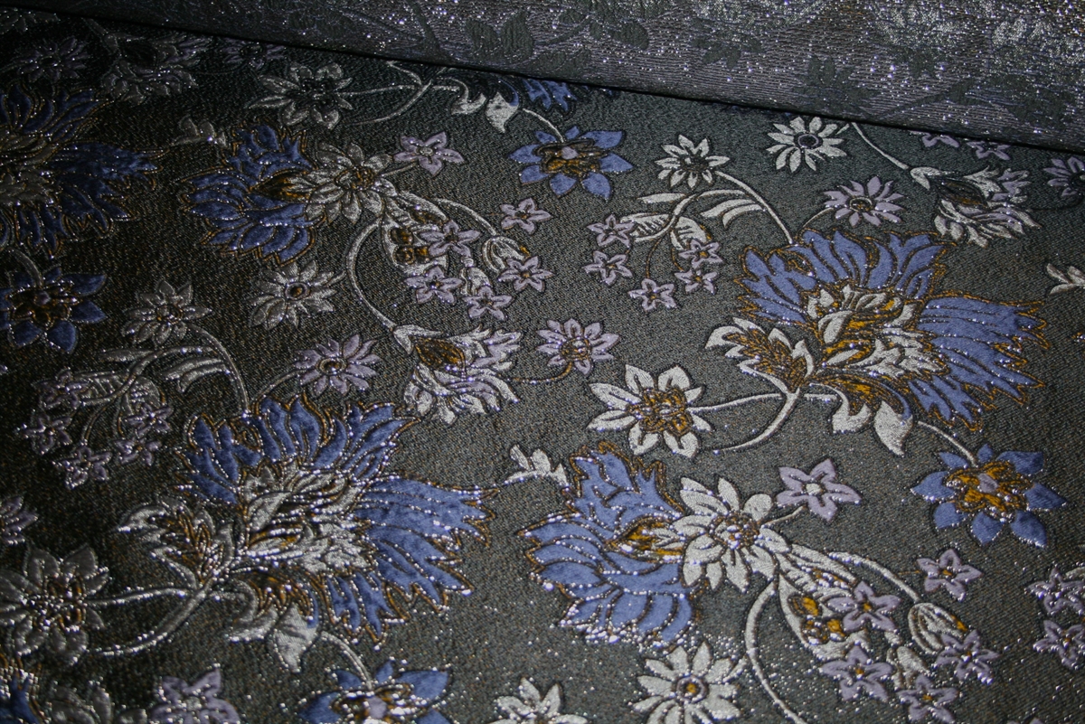 Eksklusiv jacquard med skinnende blomster i 3D-effekt. Kvaliteten er medium kraftig og bærer sig selv.