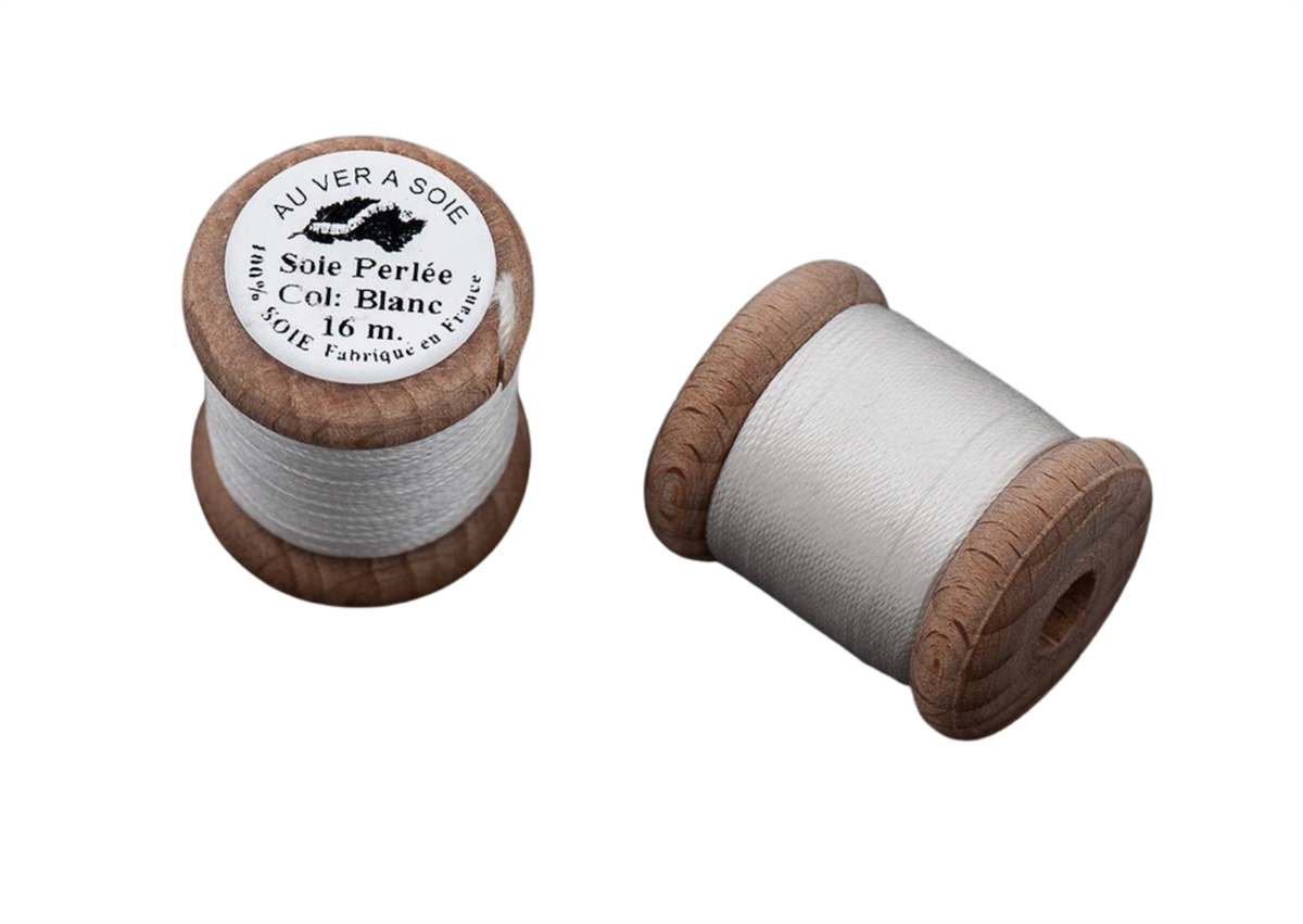 3 trådet knaphulssilke spundet af råsilke af højeste kvalitet på fin cone af træ.