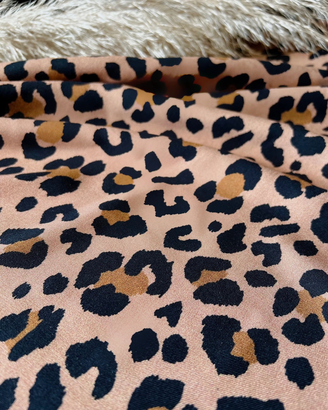 Twillvævet viskose stof med leopardmønsterTwillvævet viskose stof med leopardmønster