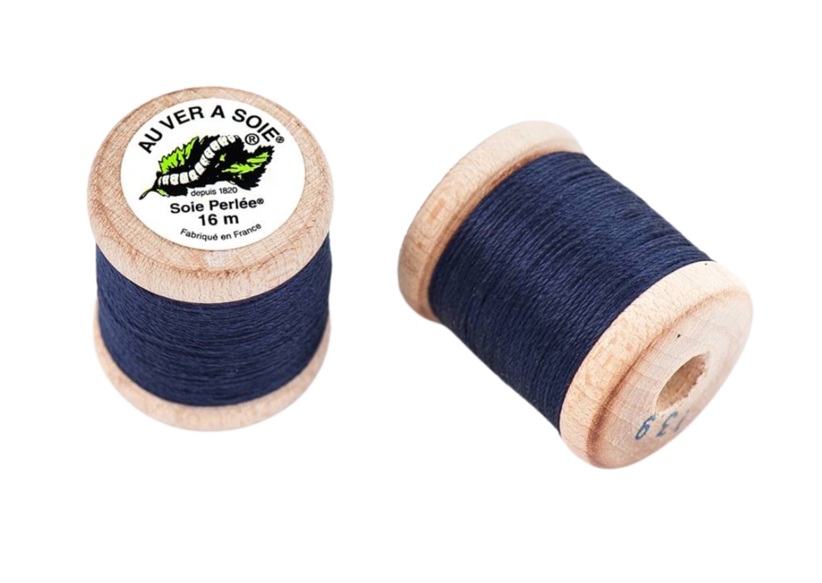 3 trådet knaphulssilke spundet af råsilke af højeste kvalitet på fin cone af træ.