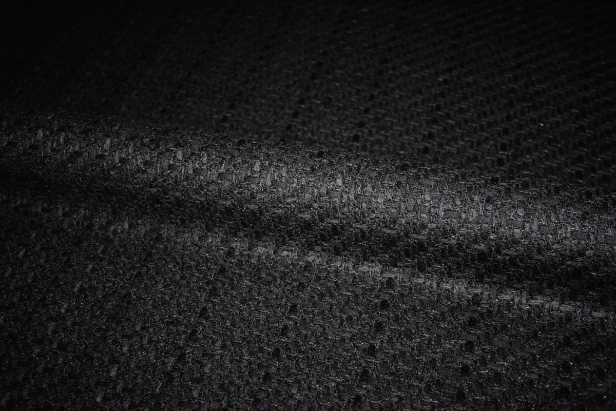 Kulsort italiensk bouclé med en subtil blank tråd i vævningen Stoffet er produceret til et stort modehus. Perfekt til en kort couture-inspireret jakke.