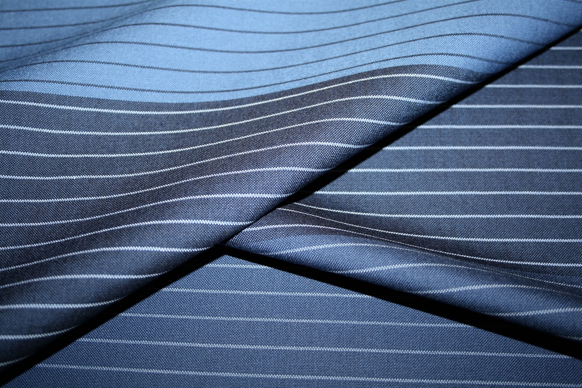 Uld stof med striber i blå nuancerUld stof med striber i blå nuancer