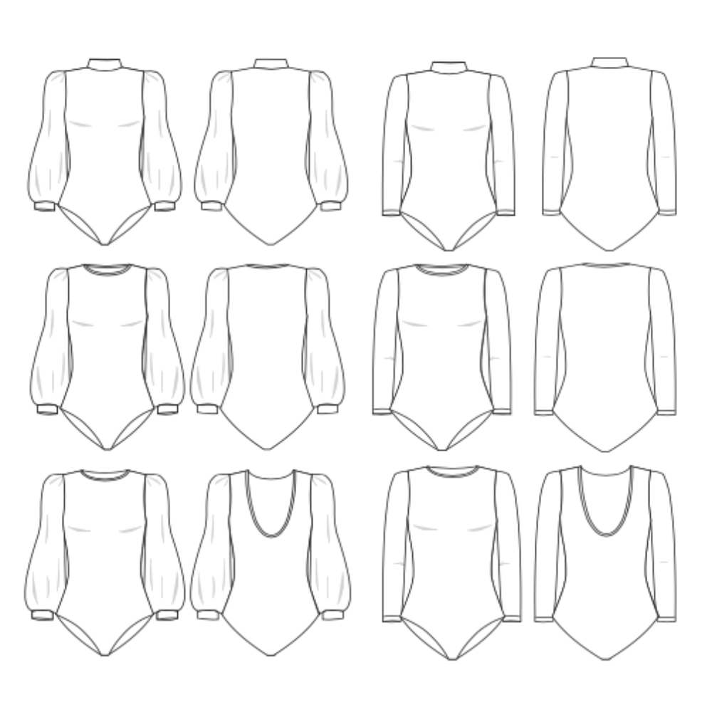 En bodystocking er for mange en essentiel del af garderoben året rundt. Med sine tre halsudskæringer (høj hals, rund eller dyb rygudskæring) og sine to ærmer (lige eller puffede), tilpasser denne bodystocking sig alle dine ønsker. Komfortabel, elegant og nem at bære, den passer lige så godt til et par bukser som under en kjole.