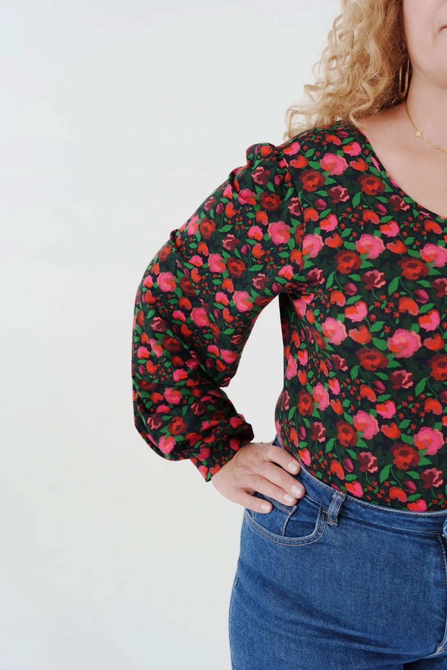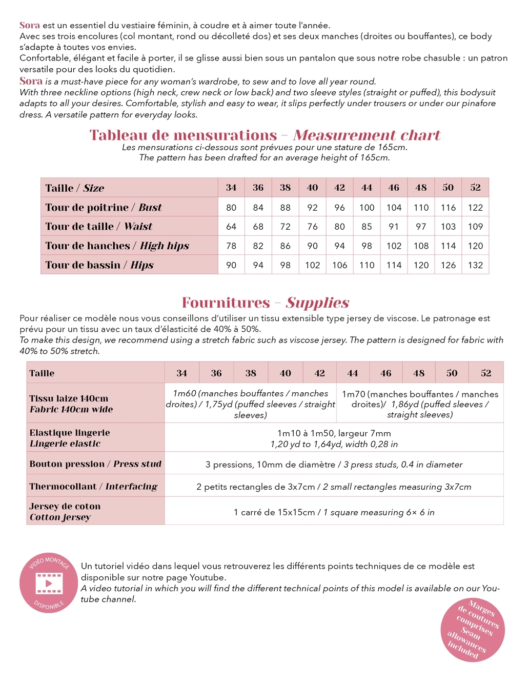 Der medfølger engelsk syvejledning. Der findes desuden (fransksproget) videoguide, der viser, hvordan blusen syes trin for trin. Symønsteret er inkl. sømrum.