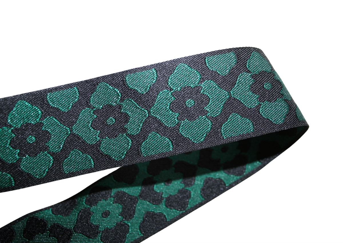 Sort/grøn jacquardvævet bånd 4 cm.