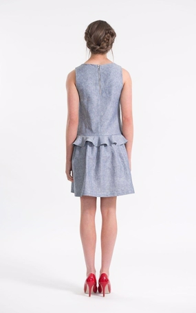 Snitmønster til 'relax-fit' sommerkjole og top med bølgende volant, bryst -og rygindsnit og synlig lynlås i nakken.