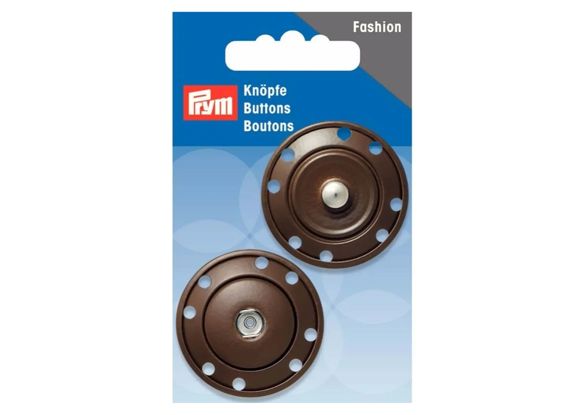 Brun tryklås fra Prym. Tryklåsen der er 3,5 cm. i diameter kan bruges til lukning af overtøj.