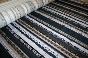 Let bomulds jersey med cool print i lodret forløb. Stoffet er produceret for Versace.