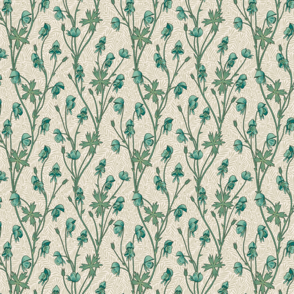 William Morris bomulds stof \'SM Monkshood Mineral\'