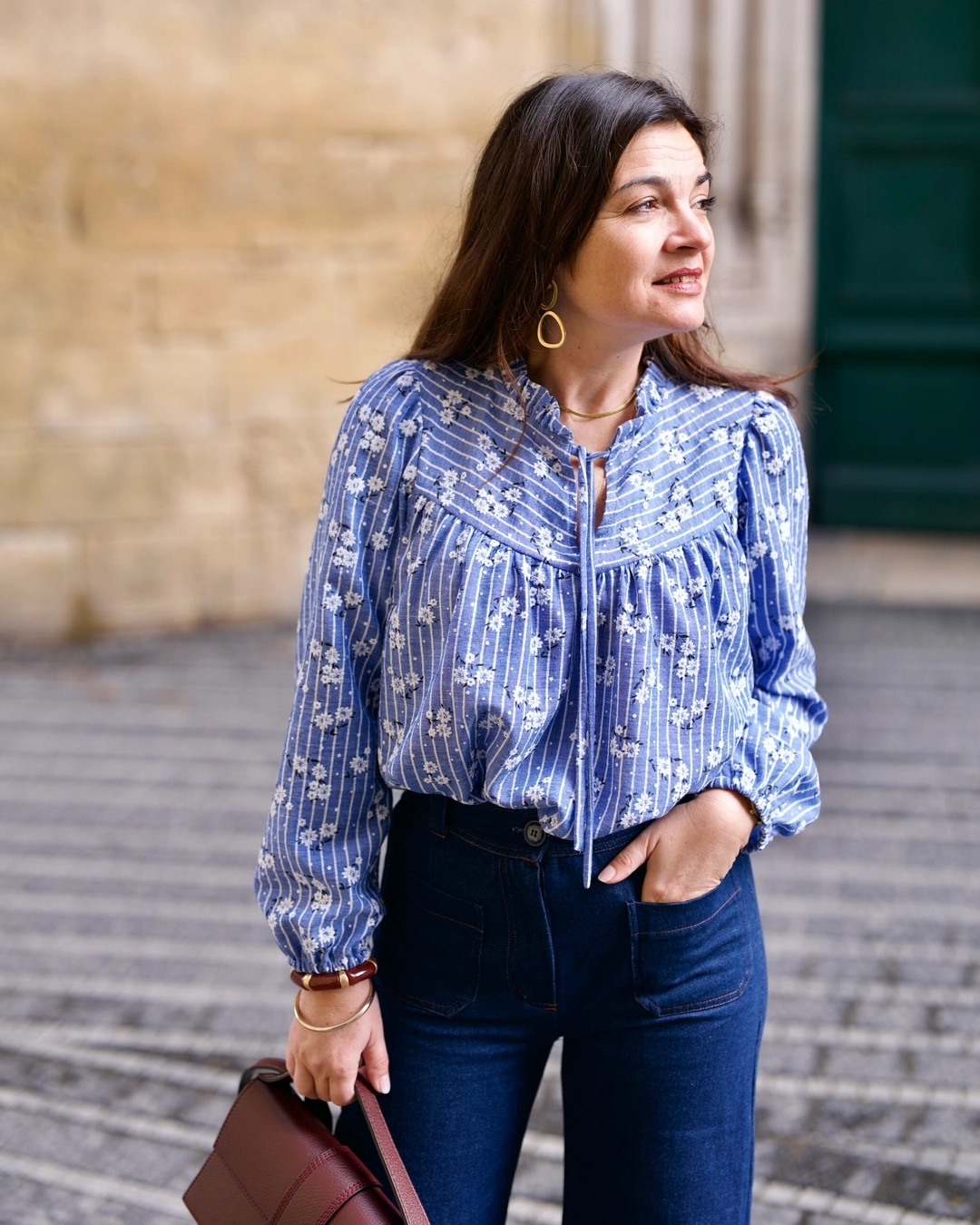 Zélie er et symønster skabt til dig, der elsker afslappet elegance og et feminint bohemisk udtryk. Overskæringen giver en smuk struktur til silhuetten, mens det rummelige snit og de fine rynker tilfører lethed og bevægelse. Den slidsede halsudskæring med bindebånd giver et raffineret og romantisk touch. I kjoleversionen fuldendes designet af en bred flæse.